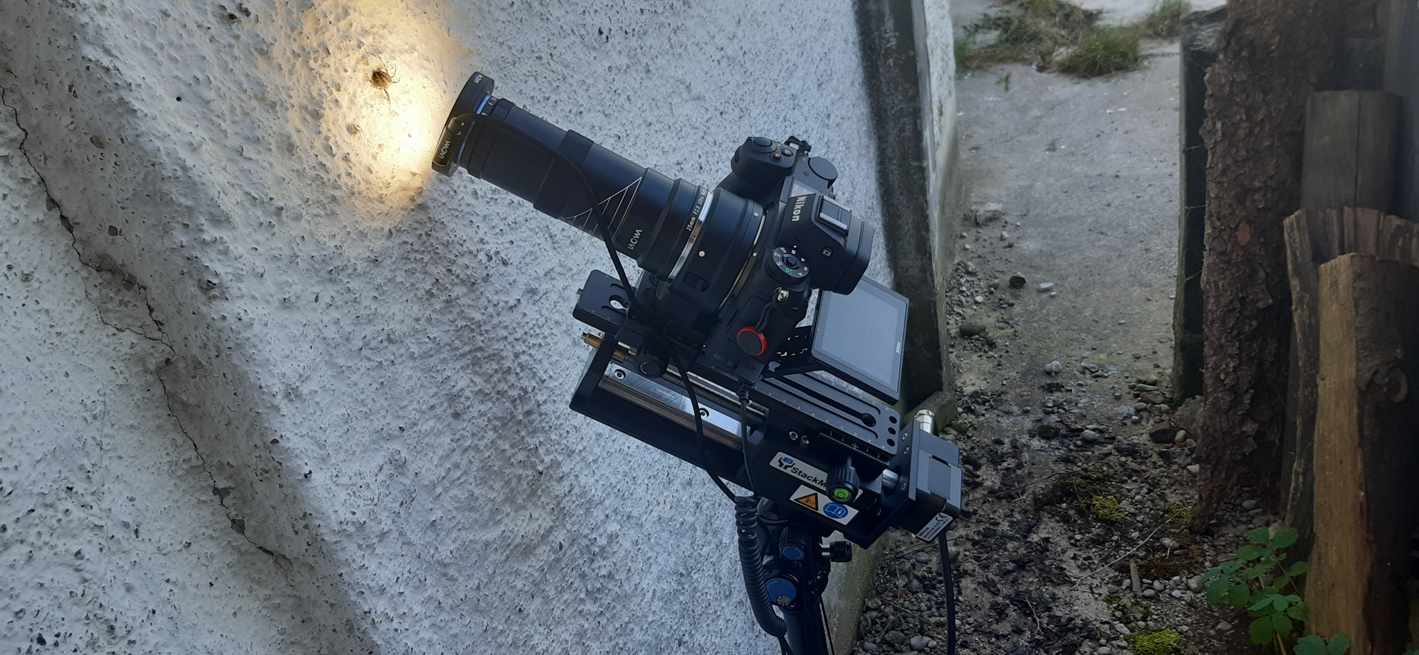 StackMaster Revolution Kit is an electronically controlled macro rail system for outdoor focus stacking. It was developed especially for outdoor use. Due to consequent weight reduction and direct drive, the outdoor photographer has a light, very precise and in handling unique device at his disposal.